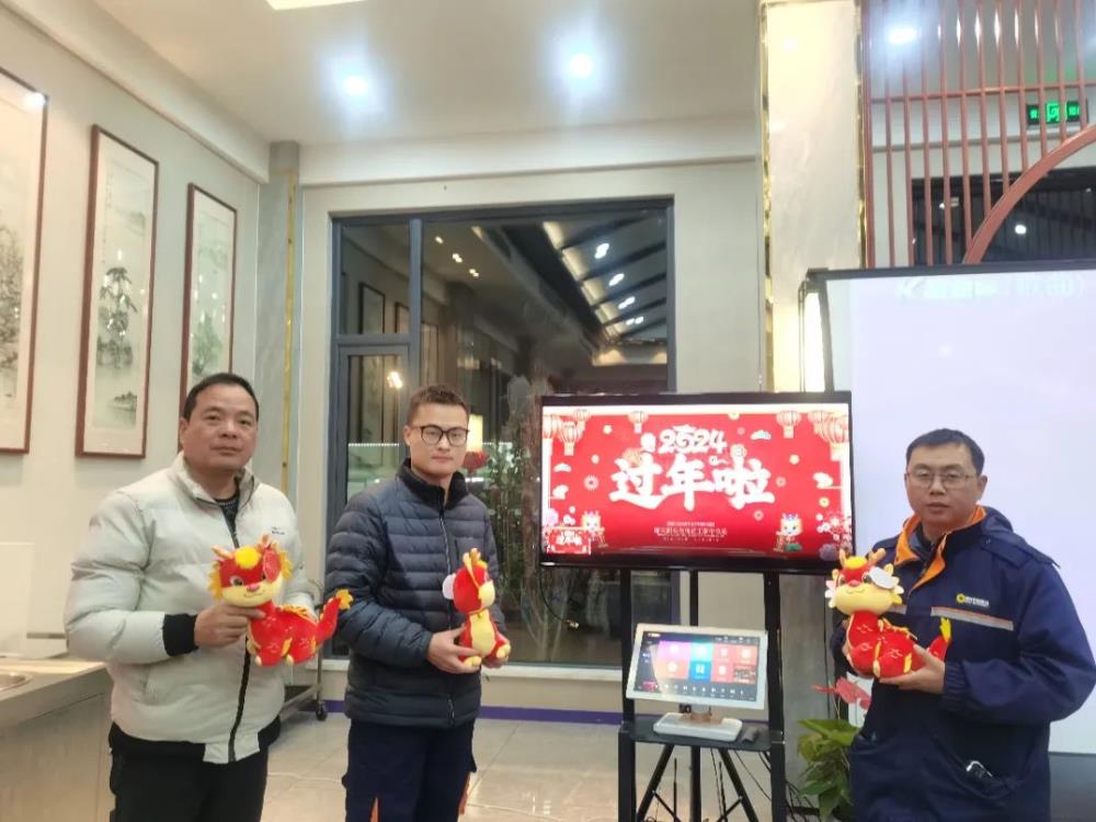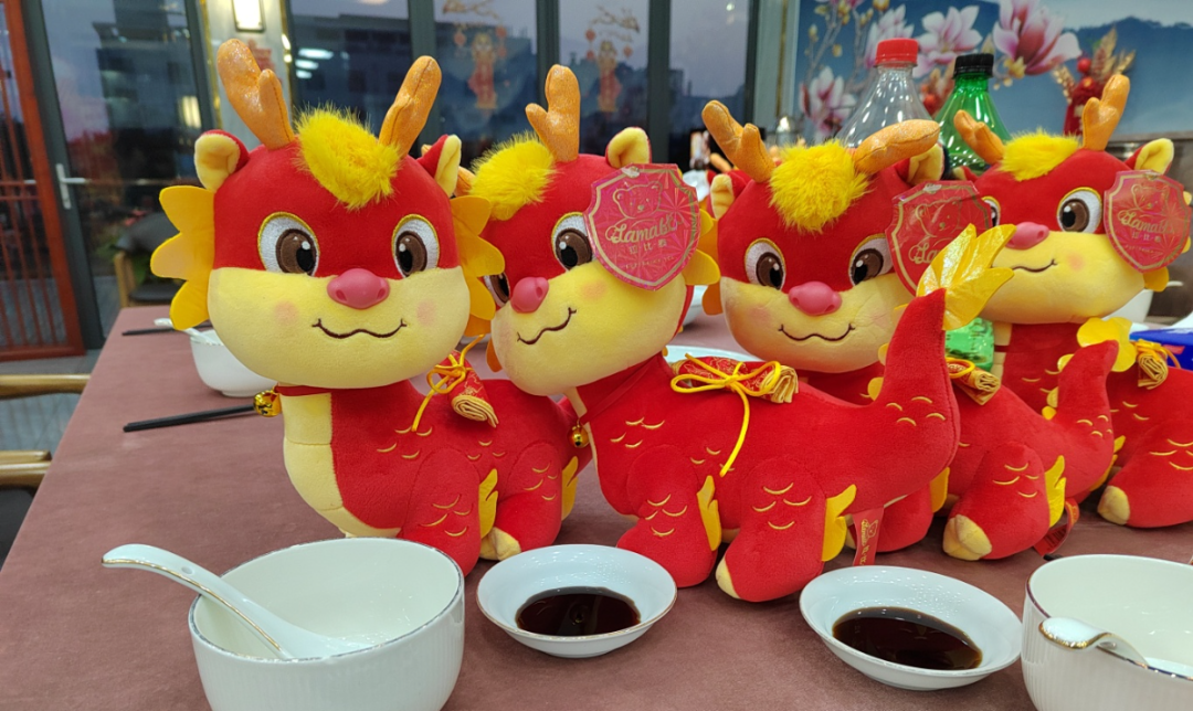 公司特意為留守員工準(zhǔn)備了龍年吉祥物,在一陣陣歡快的歌聲中,年夜飯達(dá)到高潮。大家紛紛表示,這頓年夜飯,在麗天碼頭這個“家”里吃,很幸福!