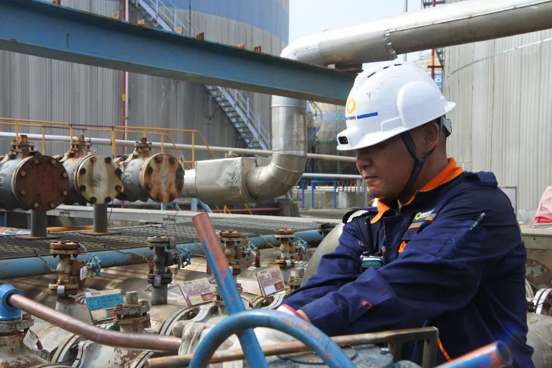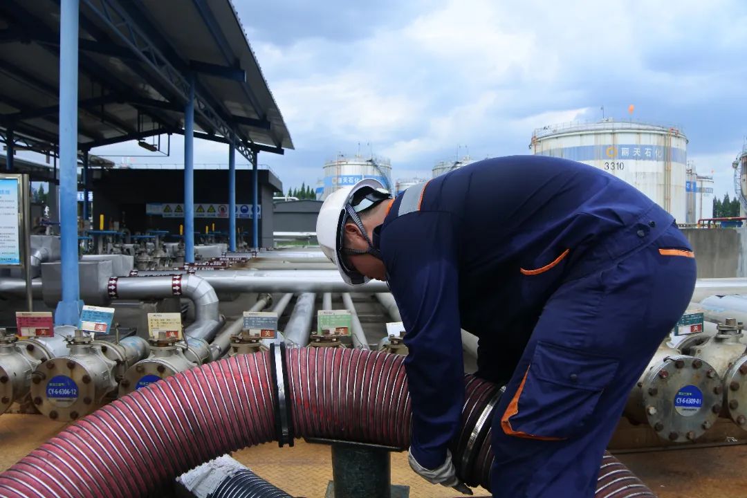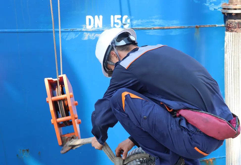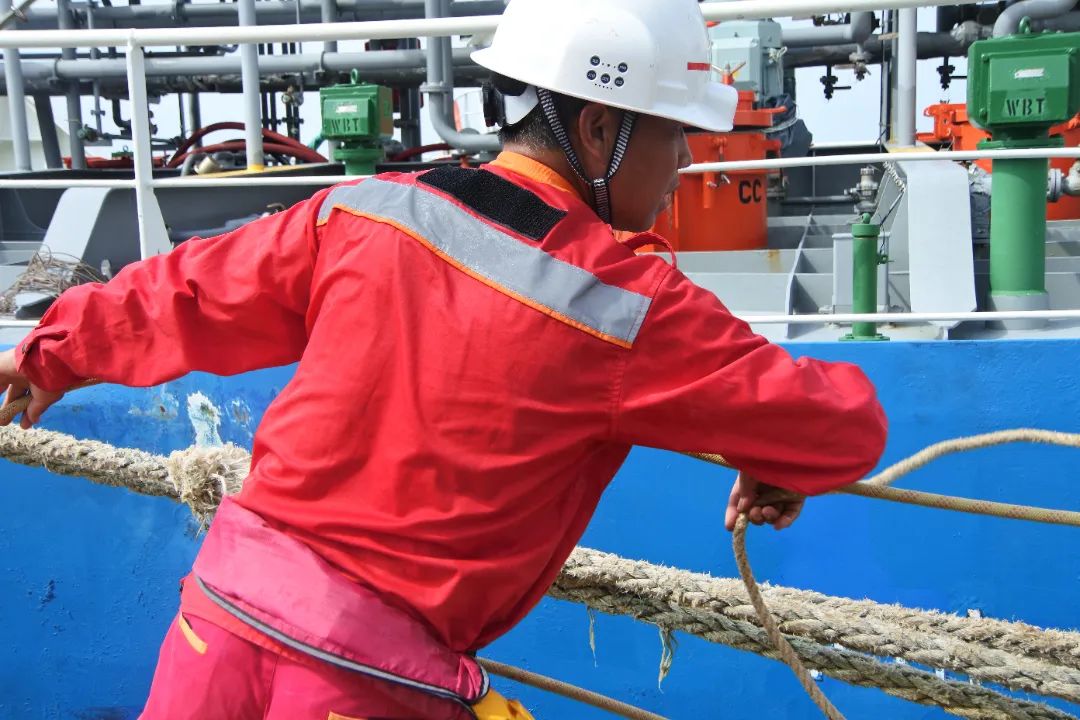 高溫天氣“超長待機(jī)”中,碼頭班成員們身著工作服、頭戴安全帽緊張而有序地穿梭于各項關(guān)鍵任務(wù)之間—從精細(xì)的管線清洗到嚴(yán)謹(jǐn)?shù)南磁撟鳂I(yè),再到繁忙的裝卸船流程,每一個動作都顯得那么迅速而精準(zhǔn)。他們那被歲月與辛勤汗水共同塑造的黝黑健康膚色,成為了無聲的榮譽標(biāo)志,默默講述著每一次面對挑戰(zhàn)時的堅韌不拔,記錄著每一次對對職責(zé)的堅守。
