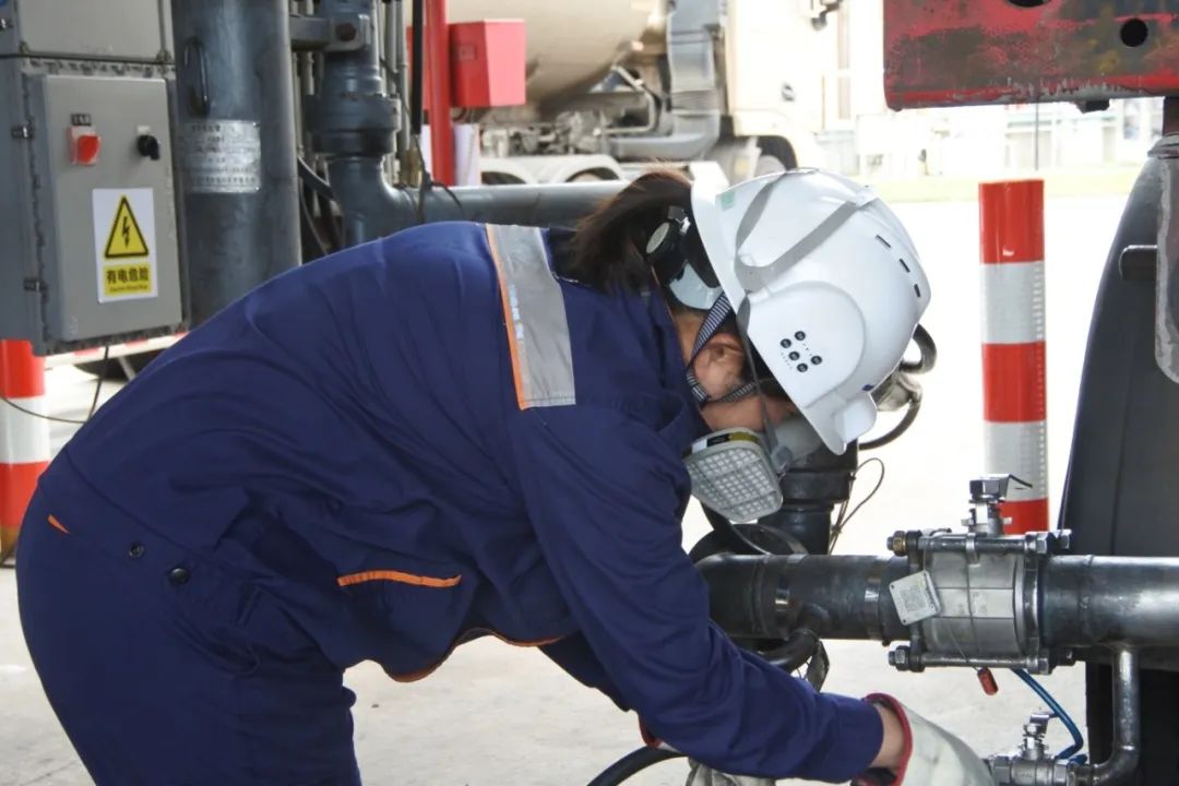 發(fā)車現(xiàn)場,發(fā)車員們?nèi)蔽溲b,在熱浪的包圍中,以冷靜的頭腦和精準(zhǔn)的判斷力,對車輛閥門的法蘭面、鶴管口等關(guān)鍵部位進(jìn)行全面而嚴(yán)格的檢查。汗水浸透了衣背,他們卻絲毫未減嚴(yán)謹(jǐn)?shù)膽B(tài)度,依舊高效安全地完成每車裝卸作業(yè),展現(xiàn)了專業(yè)素養(yǎng),更傳遞出了對工作的熱愛和對責(zé)任的擔(dān)當(dāng)。