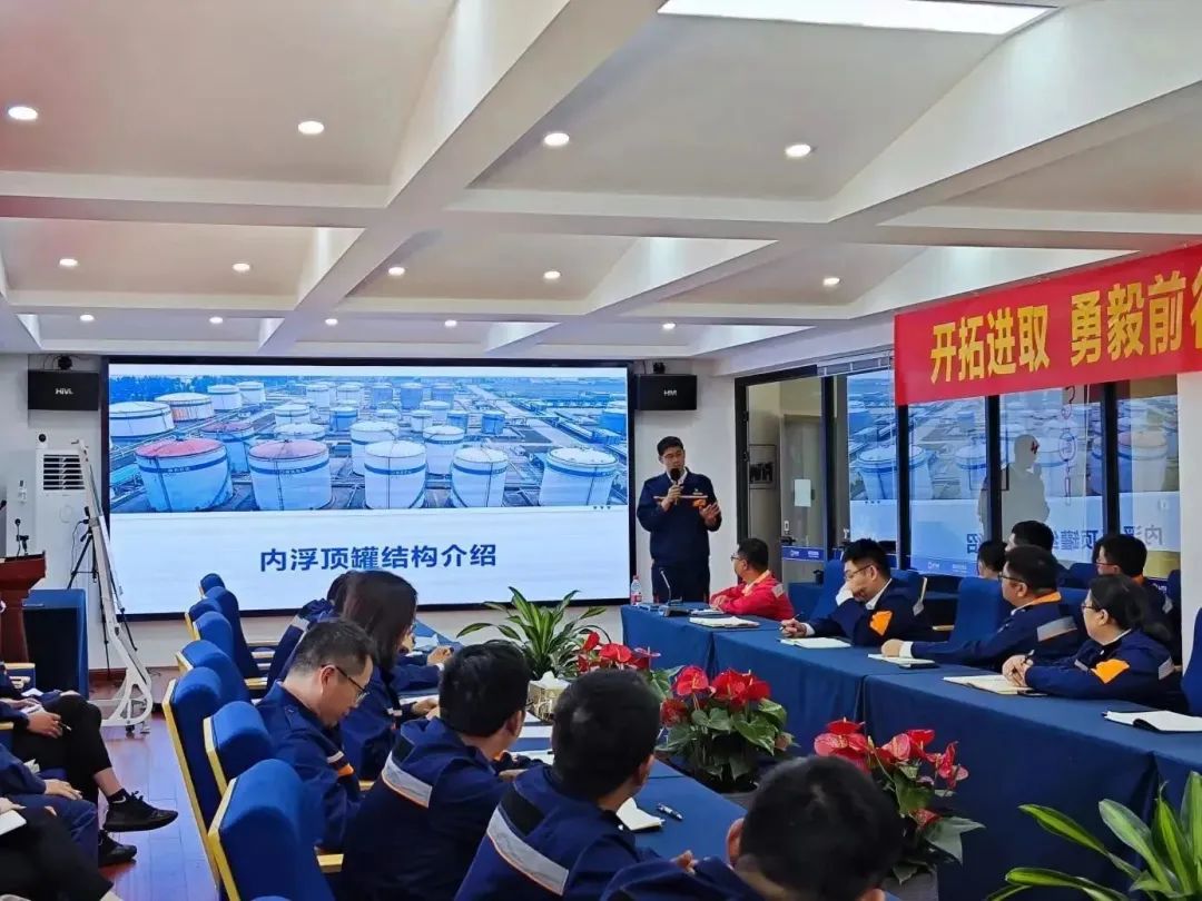 培訓學校的第一課,由儲運部高建祥以“公司內(nèi)浮頂罐結構”為重點,開展學習培訓。課堂上,講師與學員積極互動,進一步強化了員工們的化學知識技能,熟悉了操作規(guī)程。