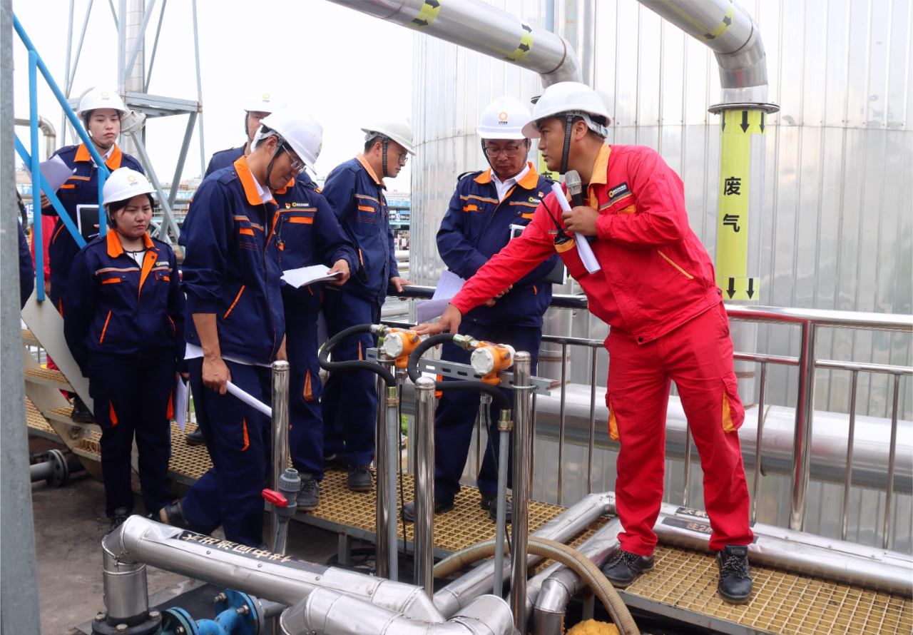 在洗艙處理站現(xiàn)場,培訓講師針對污水罐、功能池、處理裝置等作業(yè)區(qū)域,結合實際情況,按照有作業(yè)及無作業(yè)情況下的巡查要點,分別進行深入細致的講解,強調要從設備設施的功能性、安全性、可能發(fā)生的風險點出發(fā),通過現(xiàn)場查看設備運行狀態(tài)、復核閥門啟閉情況、嗅聞有無異味等多種方式,對巡查要點進行逐一排查,將環(huán)境風險隱患消除在萌芽狀態(tài)。