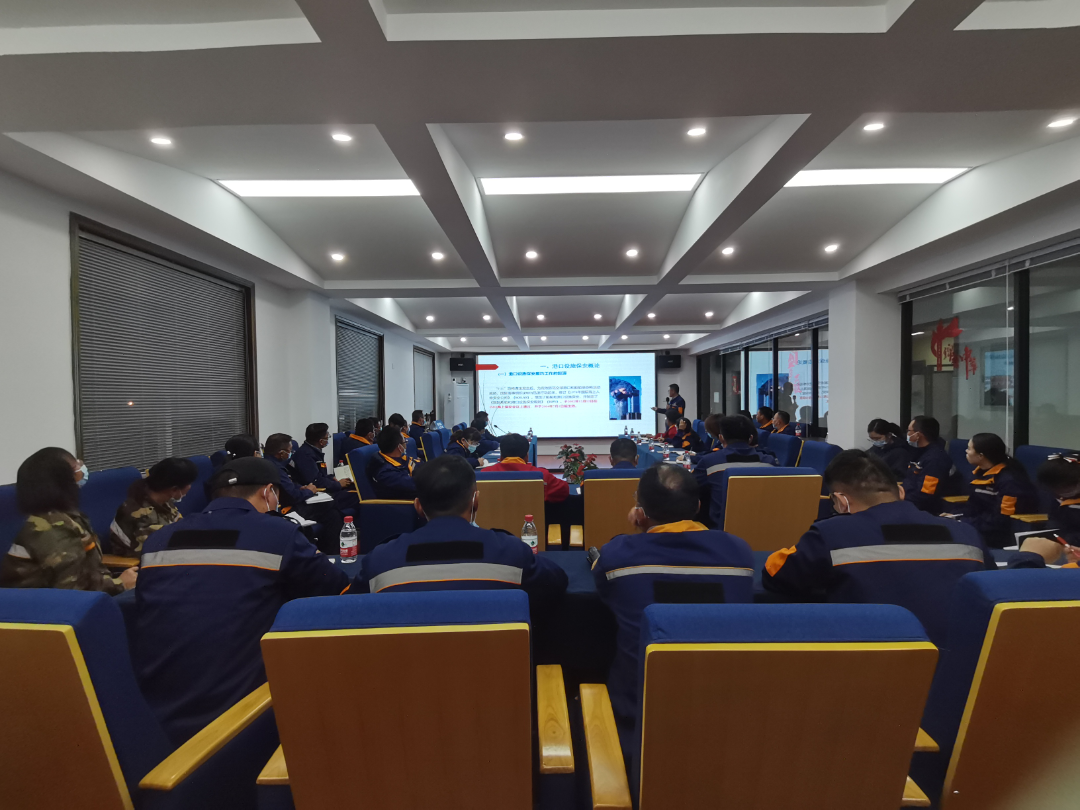 公司副總殷平華做培訓(xùn)主講,從什么是港口設(shè)施保安工作、港口設(shè)施保安等級(jí)如何區(qū)分、港口設(shè)施發(fā)生保安事件如何報(bào)告等,對(duì)港口設(shè)施保安相關(guān)內(nèi)容做出了系統(tǒng)性相關(guān)講解。